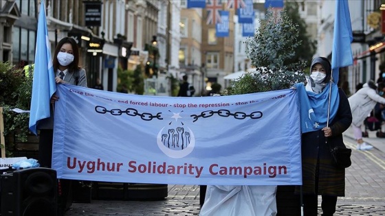 Çin Halk Cumhuriyeti'nin, kuruluşunun 71. yıldönümünde başta Uygur Türkleri olmak üzere azınlıklara yönelik politikaları, İngiltere'nin başkenti Londra'da protesto edildi.