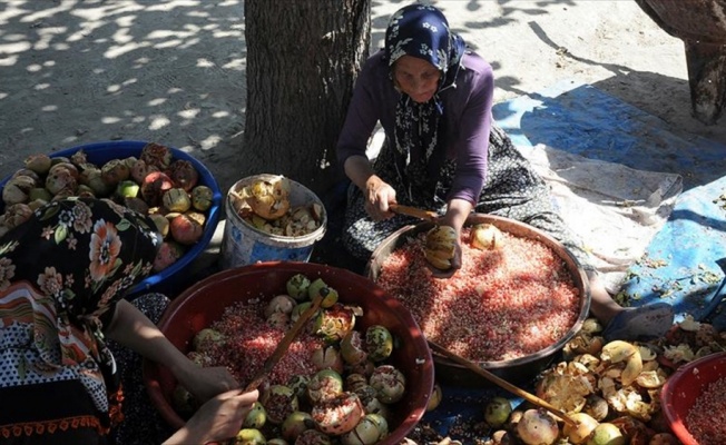 OSMANİYE (AA) - Çukurova'da kadınlar, yemek ve salatalara lezzet katan nar ekşisi yapımına başladı.