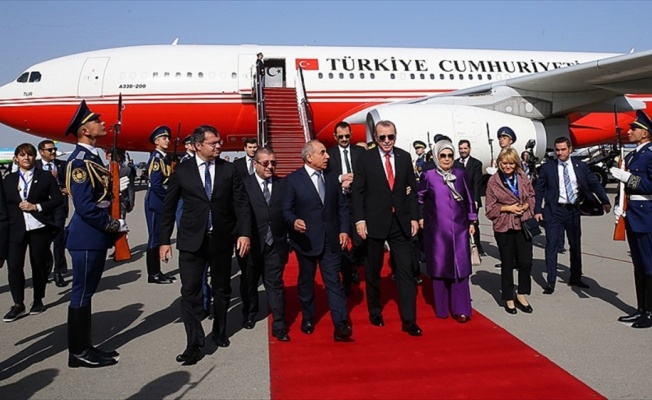 BAKÜ (AA) - Cumhurbaşkanı Recep Tayyip Erdoğan, özel uçak "TUR" ile TSİ 12.05'te Azerbaycan'ın başkenti Bakü'ye geldi.