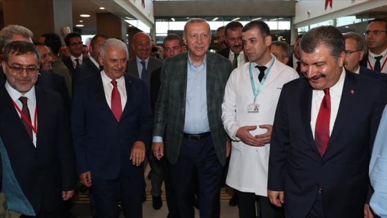 Hastanede incelemelerde bulunan ve tedavi gören hastaları ziyaret eden Erdoğan, yetkililerden bilgi aldı.