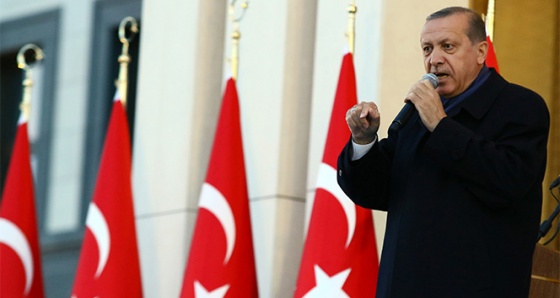 "Referandum sonucunu gölgelemek için gösterilen gayreti üzüntü ile takip ediyorum" Türkiye’nin uzun zamandır arayış içinde olduğu büyük reformu 16 Nisan’da gerçekleştirdiğini vurgulayan Erdoğan, "Bu da onları rahatsız ediyor. Millet karar veriyor. Milletin kararı her şeyin üstünde değil mi. 16 Nisan halk oylaması sonuçlarının ülkemiz milletimiz geleceğimiz için hayırlara vesile olmasını diliyorum. Şu katılıma bak, böyle bir katılım Avrupa’da var mı? Yüzde 85.5. Yaklaşık 50 milyon vatandaşımın her birine teşekkür ediyorum. 49 milyon geçerli oy içindeki 25 milyon 157 bin evet oyu ile bu büyük reformun yüzde 51. 4 oranla hayata geçmesi yönünde irade beyan eden vatandaşlarıma ayrıca teşekkür ediyorum. Seçim meydanları, er meydanlarıdır. Ne sözünüz varsa orada söylemeniz gerekir. Seçim bittikten sonra ortaya çıkan sonucun üzerine gölgelemek için gösterilen gayretleri ben bir Cumhurbaşkanı olarak üzüntü ile takip ediyorum. Sandıktan elde edilemeyen sonucu, çünkü YSK bizim hukukumuzda nihai kararı veren mercidir. YSK’nın dışında bir merci yoktur. Bunlar ne yaptı? YSK kesin kararını açıklamasına rağmen Danıştay’a müracaat ettiler. Oradan da ret yanıtı aldılar. Anayasa Mahkemesinde arayışa girdiler. Anayasa Mahkemesi zaten daha önceden de açıklamasını yapmıştı. Şimdi AİHM’de kendilerine çözüm arayanlara sözüm şudur. Başarıyı yanlış yerde arıyorsunuz. Başarıyı mahkeme kapılarını aşındırarak değil, ancak milletin gönlüne girerek elde edebilirsiniz. Niye millete saygı duymuyorsunuz. Millet kararı verdi, bu işi bitirdi. Boşuna uğraşıyorsunuz. 16 Nisan artık geride kaldı. Bir kez daha milli irade hür bir şekilde sandıkta tecelli etmiştir. Milli iradesine saygısızlık gösterilmesi bir defa son derece yanlıştır. Artık bu halk oylamasını da, sonuçlarını da tartışmanın kıymeti yoktur" ifadelerini kullandı.