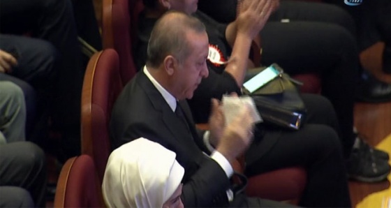 Beştepe Millet Kültür ve Kongre Merkezinde düzenlenen 15 Temmuz Şehitleri Anma Programına katılan Cumhurbaşkanı Erdoğan, salona şehit yakınları ve gazilerin tezahüratları arasında girdi. Salonda bulunan şehit yakınları ve gazilerle tokalaşan ve kısa sohbetler eden Cumhurbaşkanı Erdoğan’ın yanı sıra törene TBMM Başkanı İsmail Kahraman, Başbakan Binali Yıldırım ve bakanlar katıldı.