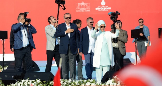 Yenikapı’da gerçekleştirilen Demokrasi ve Şehitler Mitingi’ne katılan Cumhurbaşkanı Recep Tayyip Erdoğan, alanı dolduran milyonlara hitap etti. Erdoğan konuşmasına, “15 Temmuz gecesi bir kez daha istikbali için kıyam eden, canı pahasına ülkesini Fetullahçı Terör Örgütü’ne teslim etmeyen aziz milletim, sizleri en kalbi duygularımla selamlıyorum” diyerek başladı.