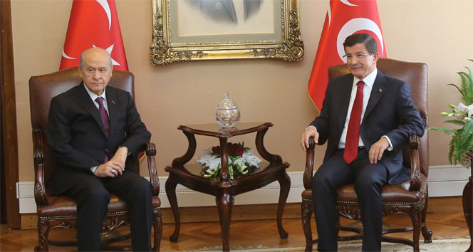 Başbakan Davutoğlu, MHP Lideri Bahçeli’yi Meclisteki makamında ziyaret etti. Davutoğlu’na Çalışma ve Sosyal Güvenlik Bakanı Faruk Çelik eşlik ederken, Bahçeli’ye ise Genel Başkan Yardımcısı Semih Yalçın eşlik etti. Koalisyon ve erken seçim konularının masaya yatırıldığı görüşme 2 saat 27 dakika sürdü. Davutoğlu, görüşme sonrasında gazetecilerin soruları üzerine “Gerekli açıklama yapılacak” dedi.