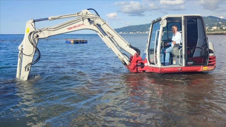 Rize'de Arap turist, denizde kaybettiği kolyesini bulmak için iş makinesi kiralayarak arama yaptırdı.