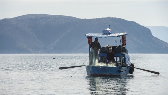 Tek başına ya da ikişerli gruplar halinde bindikleri teknelerle gölün maviliklerine doğru ilerleyen balıkçılar, en büyük ve en lezzetli balıkları yakalamak için belirledikleri alanlara ağlarını bırakıyor.