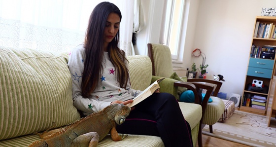Ankara'da yaşayan ve fen bilgisi öğretmeni Zehra Yıldız, tropikal iklimde yaşayan egzotik bir kertenkele türü olan iguana ile 10 yıldır birlikte yaşıyor.