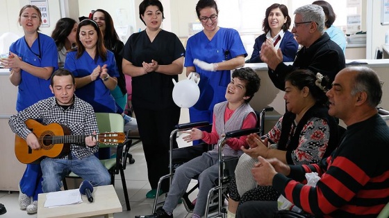 İzmir'de, 29 yaşındaki diyaliz hastası İsmail Ulus, tedavi gördüğü Kronik Diyaliz Eğitim Merkezinde gitarıyla kendisi gibi böbrek nakli olmayı bekleyen hastalara şarkı söyleyerek moral veriyor.