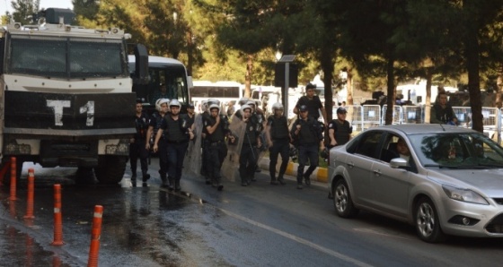 Edinilen bilgiye göre, dün akşam saatlerinde gözaltına alınan Diyarbakır Büyükşehir Belediye Başkanı Gültan Kışanak ve Fırat Anlı’nın polis tarafından emniyet müdürlüğüne götürülmesini protesto eden bir grup belediye önünde toplandı. Polis ekiplerinin uyarılarına rağmen dağılmayan gruba tazyikli su ile müdahale eden polis ekipleri tarafından grup içinde bulunan 25 kişi gözaltına alındı. Gözaltına alınan 25 kişi sorgulanmak üzere Diyarbakır Emniyet Müdürlüğü Terörle Mücadele Şube Müdürlüğü’ne götürüldü.