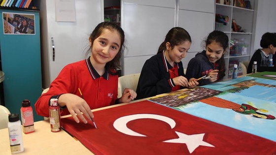 Özel okulda 6. sınıf öğrencisi Dilara Nur Özdemir, darbe girişimi sırasında yaşananları ve milletin ortaya koyduğu iradeyi yansıtan yağlı boya tablo yaptı.