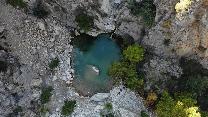 Çalışmaya katılan AA ekibi, çevresindeki birkaç köy halkınca bilinen, Aksu Çayı'nın yakınında içinde göletlerin oluştuğu yaklaşık 800 metre uzunluğundaki kanyonu görüntüledi.