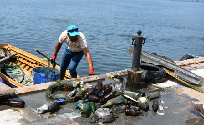 Sandallarla kıyıya getirilen yaklaşık 20 traktör römorku atık, belediye ekiplerince alındı.