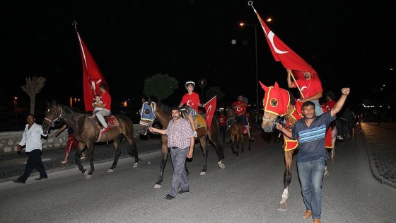 Düzce'de yaşayan Roman vatandaşlar, Fetullahçı Terör Örgütünün (FETÖ) darbe girişimini protesto etmek için meydanlardaki demokrasi nöbetlerine atlarıyla geldi.
