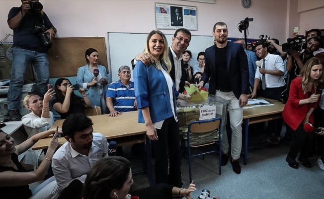 İSTANBUL (AA) - CHP İstanbul Büyükşehir Belediye Başkan Adayı Ekrem İmamoğlu, eşi Dilek İmamoğlu ve oğlu Mehmet Selim İmamoğlu ile oyunu kullanmak için Beylikdüzü'ndeki Haldun Taner İlkokuluna geldi.