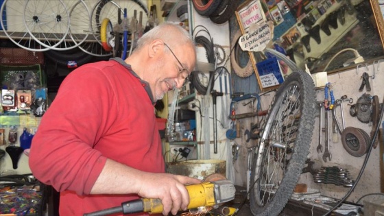 Açtığı tamir atölyesinde 17 yıldır severek çocukların bisikletlerini tamir eden Kurukafa, AA muhabirine, atölyeyi emeklilik döneminde eve hapsolmamak için kurduğunu anlattı.