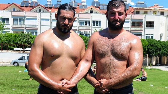 Antalya'nın Kemer ilçesinde yağlı güreşle ilgilenen kuzenler İsmail ve Emre Erkal, er meydanında amansız rakipler.
