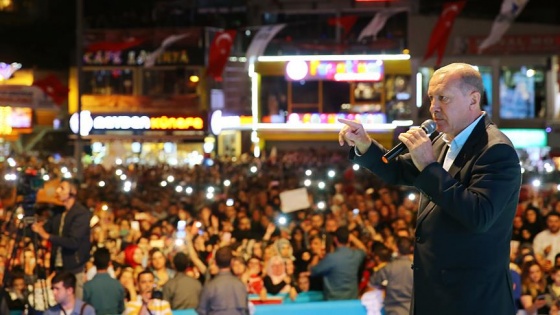 Burada yaptığı konuşmada sözlerine, "Ramazan-ı Şerif'inizi, Kadir Gecenizi tebrik ediyorum. Bu mübarek günlerin ve gecenin hepimizin affına ve mağfiretine vesile olmasını Rabbim'den niyaz ediyorum." diyerek başlayan Erdoğan, bugün bu meydanda 10 binlerce kişinin birlikte olduğunu söyledi.