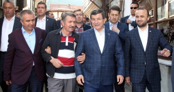 Bolu’nun Göynük ilçesinde AK Parti Bolu Milletvekili Fehmi Küpcü, Göynük Belediye Başkanı Kemal Kazan ve partililer tarafından karşılanan Prof. Dr. Ahmet Davutoğlu ve eşi Sare Davutoğlu ilk olarak AK Parti İstanbul Milletvekili Mehmet Ali Pulcu’yu ilçede bulunan evinde ziyaret etti. Davutoğlu, 10 dakika kaldığı evden yürüyerek çıkarak, ilçe merkezinde bekleyen vatandaşlarla selamlaştı. Vatandaşların yoğun ilgisiyle karşılaşan Davutoğlu çifti, çocukları bol bol severek hafta sonunda keyifli anlar yaşadılar. İzdiham nedeniyle uzun süre yürüyemeyen Ahmet Davutoğlu, fotoğraf çektirmek isteyen vatandaşların isteklerini geri çevirmedi. Sare Davutoğlu köylü kadınlarından iki parça eşya satın aldı. Para almak istemeyen kadınlara Sare Davutoğlu, “Bereketli olur” diyerek ücretini ödedi.