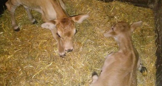 Sinop’un Erfelek ilçesinde ikiz doğuran inek, sahiplerinin mutluluk kaynağı oldu. Kurcalı köyü Halilustaoğlu Mahallesi’nde ikamet eden Barış Karaoğlu adlı vatandaşa ait jerse cinsi inek hamile kalarak, birisi dişi, diğeri ise erkek buzağıları dünyaya getirdi. Farklı cinsiyette doğan ikiz buzağılar sahiplerinin mutluluk kaynağı oldu. Barış Karaoğlu, "İneğim hamile kaldı ve ikiz buzağıları dünyaya getirdi. Hayvancılık yaptığım bu güne kadar birçok hayvanımın doğumuna şahit oldum. Fakat ilk defa bir ineğim ikiz buzağı doğurdu. Buzağılarımın hem ikiz olması, hem de farklı cinsiyette dünyaya gelmeleri mutluluğumuzu ikiye katladı. Erkek olan buzağının adı Şaban dişi olana Arife koyduk. Merak eden komşularımız buzağılarımızı görmeye ve sevmeye geliyor. Buzağılar ailemiz için mutluluk kaynağı oldu" dedi. Veteriner hekimler, büyükbaş hayvanlarda ikiz ya da üçüz buzağı doğumunun çok nadir meydana geldiğini belirterek küçükbaş hayvanlarda ise bu durumun normal olduğu belirtildi.