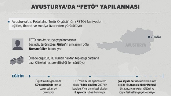 Eğitim ayağı kapsamında örgütün ülke genelinde 50'nin üzerinde kreş ve çocuk bakımevi mevcut. FETÖ'nün lisesi Phönix okulları, 2007 yılında kuruldu. Bazı Türk gruplara dernek bile açma izin verilmeyen ülkede, FETÖ'ye 2007 yılında okul açma imkanı tanınması dikkati çekiyor. Merkezi Viyana'da olmak üzere 8 eyalette şubesi bulunan Phönix okulları, özel lise statüsünde "eğitim" veriyor. Türkiye'de toplanan himmet paralarıyla açıldığı iddia edilen okullarda Avusturya eğitim müfredatı uygulanıyor. Avusturyalı öğretmenlerin de görev yaptığı okula kayıt yaptıran öğrencilerden 300 ile 700 avro arasında değişen aylık ücretler talep ediliyor.