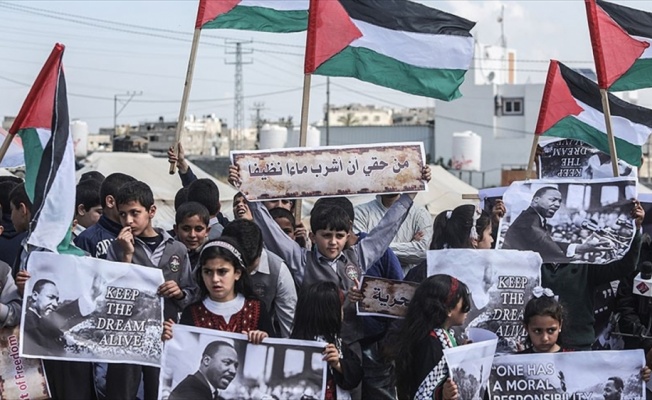 GAZZE (AA) - Gazze sınırında toplanan Filistinli çocuklar, ABD'de 50 yıl önce suikast sonucu hayatını kaybeden medeni haklar hareketi lideri Martin Luther King'i andı.