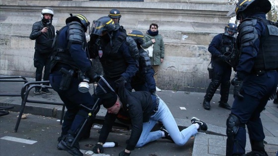 Başkent Paris'te yürüyüşün sonlandığı Nation Meydanı'na doğru dağınık gruplar halinde yürüyen göstericilerle polis arasındaki arbede akşam saatlerine kadar sürdü.