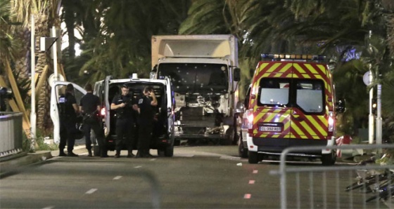 Fransa’nın Nice kentinde Ulusal Bayram kutlamalarının yapıldığı sırada kamyonu kalabalığın üzerine sürmesi sonucu 84 kişi hayatını kaybetti, 100’den fazla kişi de yaralandı.Fransız polisinin açtığı ateş sonucu kamyon şoförü öldürülürken olayla bağlantısı olan bir kişinin de kaçtığı ifade edildi. Görgü şahitleri kamyonun en az 50 kilometre hızda gittiğini ve şoförün kaçmak isteyenlerin üzerine doğru kamyonu sürdüğünü ifade etti. 31 yaşındaki kamyon şoförünün Tunus kökenli olduğu ifade edildi.