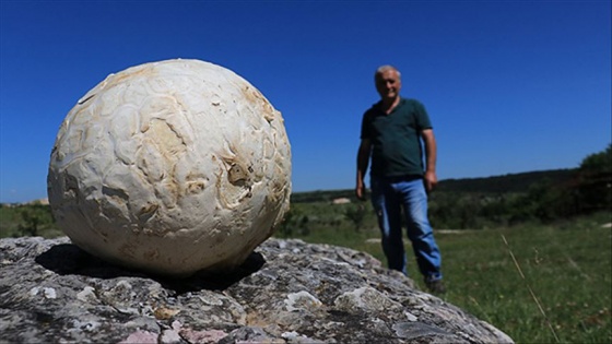 İlçeye bağlı Yeşilpınar köyünde yaşayan Muharrem Köse, merada mantar topladığı sırada futbol topuna benzeyen bir cisim gördü.