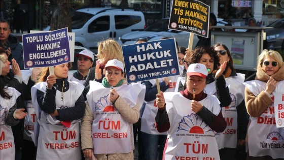 İzmir Gaziemir Belediyesi önünde bir araya gelen Tüm Yerel-Sen İzmir 2 Nolu Şubesi üyesi yaklaşık 100 çalışan, "Toplu sözleşme hakkımız, söke söke alırız", "Zafer direnen emekçinin olacak", "Başkan elini cebimizden çek" ve "Hak hukuk adalet" yazılı dövizler taşıdı.