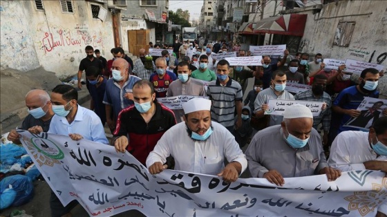 Filistin'deki İslami direniş örgütü Hamas'ın çağrısı üzerine cuma namazı sonrası Gazze'nin Han Yunus ve Cebeliye bölgelerinde toplanan yüzlerce Filistinli, Fransa'nın İslam'a yönelik tavrı nedeniyle özür dilemesini ve dini değerlere saygı göstermesini istedi.