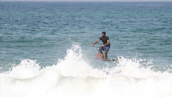 Çocukluğundan beri yüzmekten korkan 24 yaşındaki Filistinli, yaklaşık bir ay boyunca bisikletini nasıl yapacağını düşündüğünü, Kovid-19 salgını dolayısıyla getirilen karantina döneminde de Beyt Lahiya kasabasındaki atölyesinde deniz bisikletini yapmaya koyulduğunu ifade etti.