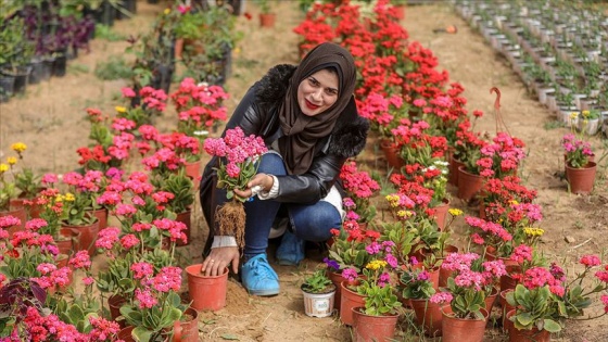 Gazze İsrail ablukası altındaki Gazze Şeridi'nde öğrenim gördüğü alanda iş bulamayan Filistinli Reva en-Neccar, işsizlikle çiçek dikerek mücadele ediyor.