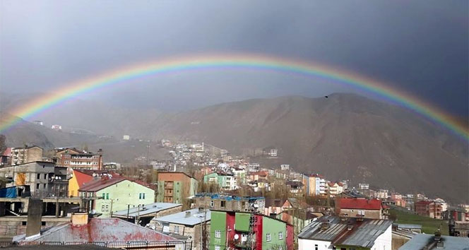 Hakkari'de yağışların ardından oluşan gökkuşağı şehir merkezinde seyrine doyumsuz ayrı bir güzellik kattı.