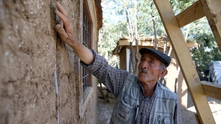Sindelhöyük Mahallesi'nde yaşayan kerpiç ustası Ayhan, çocuk yaştayken babasıyla memleketindeki kerpiç evlerin yapımında ve onarımında yıllarca çalıştı.