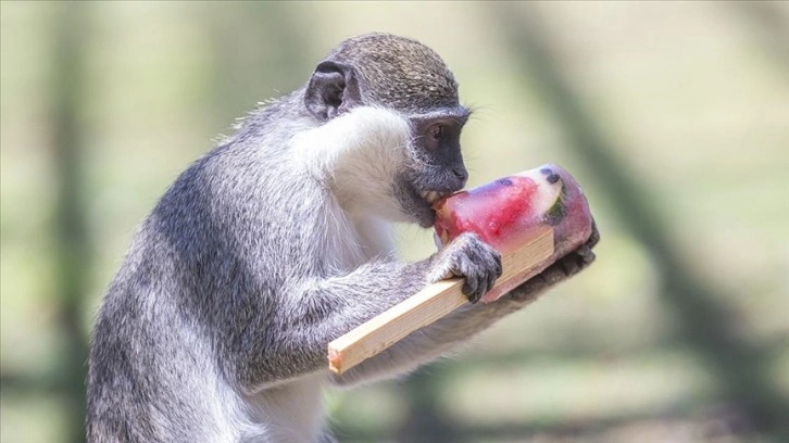 Yaşam alanlarında havuzları, serinlemeleri için fıskiyeleri bulunan hayvanlar, buzlu yiyeceklerle ferahlatılıyor.