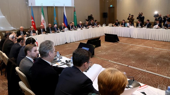 Azerbaycan Dışişleri Bakan Yardımcısı Halef Halefov başkanlığındaki toplantıya, Rusya, İran, Türkmenistan ve Kazakistanlı yetkili ve uzmanlar katıldı.
