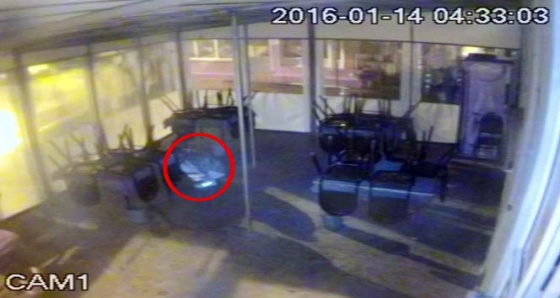 Soğukkanlı tavırlarıyla rahat bir şekilde dükkanlara girip çıkan hırsızlar, girdikleri dükkandan elleri boş çıkınca son olarak köydeki kıraathaneye girdi. Kıraathanenin muşambasını yırtarak teker teker içeriye giren hırsızlar arama yaptı. Ancak bu esnada içeride yaşananlar komedi filmlerini aratmadı. Çete üyeleri kıraathanede çalacak bir şeyler ararken, silahlı hırsız da içeride gözcülük yaptı. Elindeki poşetten çıkarttığı tabancasıyla oynayan hırsız, şarjörünü düşürdü. Düşürdüğü şarjörü yerden alan hırsız ardından yoldan geçen araçlar nedeniyle paniğe kapılarak masanın altında saklandı.