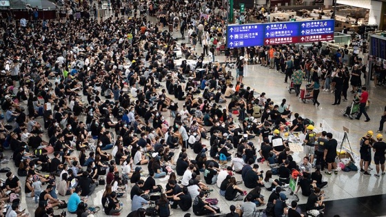 Çin'den protestolara "terör" benzetmesiÇin Devlet Konseyi Hong Kong ve Makao İşleri Ofisi Sözcüsü Yang Guang, dün uçuşların iptaliyle sonuçlanan protestolara ilişkin yaptığı açıklamada, "son birkaç günde Hong Kong radikal göstericilerin defaatle son derece tehlikeli araçlarla polis memurlarına saldırdığını ve bunun ciddi şiddet suçu oluşturduğunu" söylemişti.