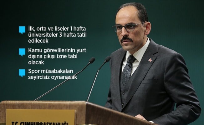 Kalın, dünyadaki tabloya bakıldığında şu ana kadar Türkiye'de alınan tedbirlerin son derece etkili olduğunu, netice verdiğini gördüklerini, bu kararlılıkla bir panik havası yaratmadan ama rehavete de kapılmadan tedbirleri uygulamak suretiyle bu süreci birlikte yürüteceklerini vurguladı.