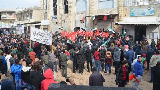 İdlib Son aylarda Beşşar Esed rejimi ve destekçilerinin saldırılarının odağındaki İdlib kent merkezi ile kırsalındaki Dana, Sarmada, Marrıtmısrin ve Keferte Harim gibi bölgelerde toplanan on binlerce sivil, ellerine Türk ve Suriye "devrim" bayraklarını alarak bir araya geldi.