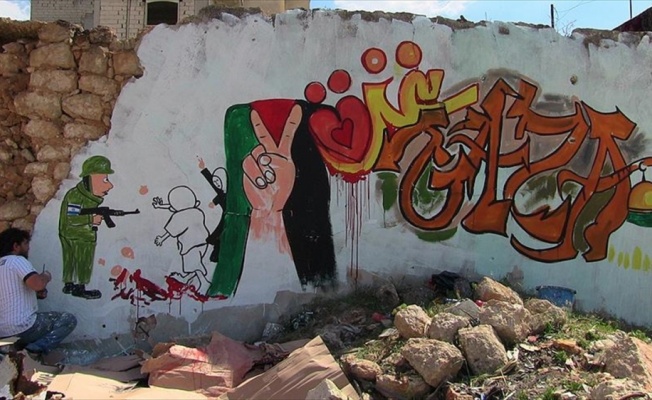 İDLİB(AA) - Suriyeli grafiti (duvar yazısı) sanatçısı, İdlib'deki hava saldırılarında hasar gören duvarlara çizdiği resimleri ile Filistin'de süren İsrail zulmüne tepki gösterirken, Filistinlilere destek mesajları veriyor.