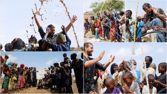Köye sondaj aleti ve ekipmanlar getiren grup, suyun ilk çıkışını ve çocukların sevincini paylaşıyor.