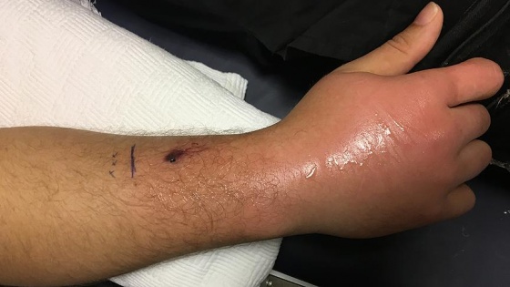 Hastayı değerlendirdiklerini belirten Çakın, "Sağ elinde, yılan ısırığının çevresinde 8-10 santimlik eritemli (kızarıklık) ödemli bir bölge vardı ama belirgin nekroz yoktu. Genel durumu iyiydi, vital (hayati) bulguları stabildi. Nörolojik bulguları yoktu ve laboratuvar bulguları normaldi." diye konuştu.