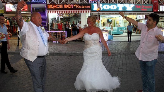 Muğla'nın Fethiye ilçesinde nikahları kıyılan İngiliz Anita-Dale Davies çifti, Türk geleneklerine göre düzenlenen düğünle dünya evine girdi.