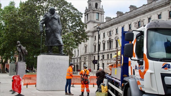 Heykellere korumaÜlkenin 1940-1945 ve 1951-1955 yıllarında iki dönem başbakanlığını yapan Churchill'in heykelinin üzerine pazar günü yapılan ırkçılık karşıtı gösterilerde "O bir ırkçıydı" yazılmıştı.