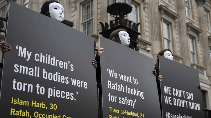 Af Örgütünden, sessiz eyleme ilişkin yapılan açıklamada, Refah'ta bulunan sivillerin İsrail'in saldırı planları nedeniyle risk altında olduğuna dikkat çekilerek, "Af Örgütü olarak İngiltere hükümetini, Refah'a yapılacak saldırı kararından İsrail'i döndürmek için elinden gelen her şeyi yapmaya çağırıyoruz." ifadesi kullanıldı.