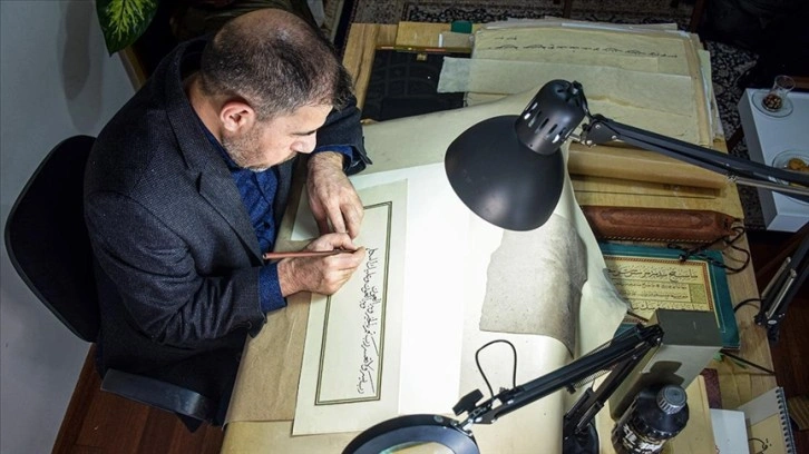 Hattat Mahfuz Zunnun Emin, AA muhabirine, hat sanatına çocuk yaşta gönül verdiğini söyledi.