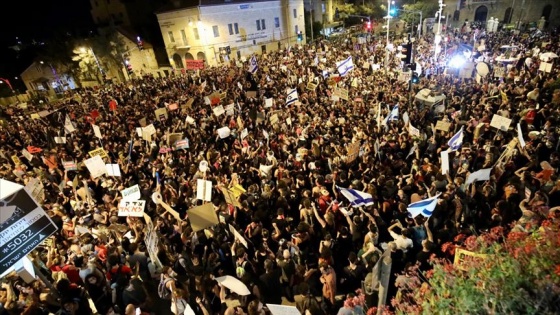 Başta Batı Kudüs ve Tel Aviv olmak üzere ülkenin farklı kentlerinde göstericiler, Netanyahu'nun istifası için sokaklara döküldü.