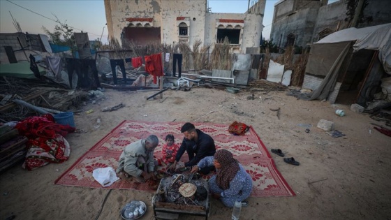 İlk kez bir ramazanı böyle evsiz ve hüzünlü geçirdiklerini dile getiren Ebu Amra, "Evimizin enkazı altından çıkardığımız ve dışarıya attığımız bu halı üzerinde toplanıp iftar yapıyoruz. Yemeklerimizi de yine dışarıda odun ateşi yakarak pişiriyoruz. Mübarek ayın gelişini anlayamadık bile. Öyle garip bir hal içindeyiz." dedi.