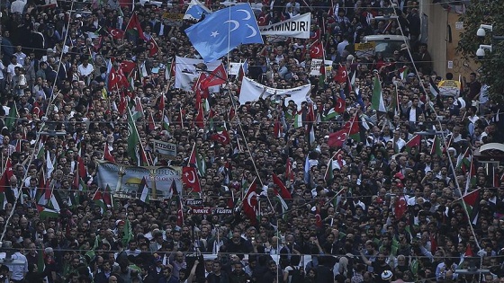 AK Parti İstanbul Milletvekili Ahmet Hamdi Çamlı da İstanbul'dan küresel hırsızlara seslendiklerini belirterek, "Kardeşlerimizin üzerinden elini çek, toprağımızın üzerinden elini çek. Yeter yüzyıldır bu ümmete çektirdiğiniz. Yüzyıldır çektirdiğiniz bu çileler artık yeter." dedi.